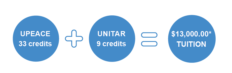 UPEACE and UNITAR offer this programme jointly. UPEACE has the mandate from the United Nations General Assembly and from the International Agreement that establishes it to award degrees, and as such, UPEACE is the degree-granting institution. UNITAR is the technical partner and delivers some courses, in addition to an optional field visit to Geneva and the Hague. As part of the curriculum, UNITAR also offers students in this programme a workshop on skills for a successful international career.
